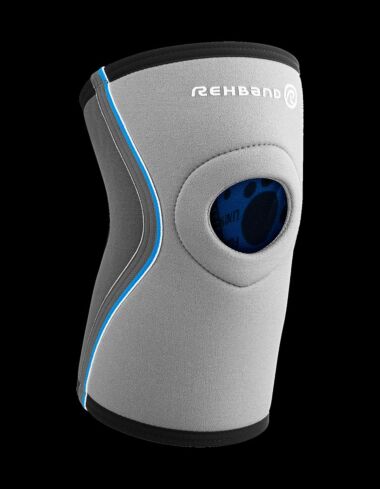 Anatomisch geformte Kniebandage. Öffnung für die Patella (Kniescheibe). Verbessert Durchblutung und Koordination. Unterstützt und wärmt.